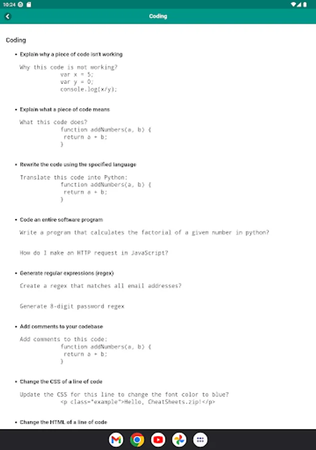 # Prompts for Coding, Programming and Development.