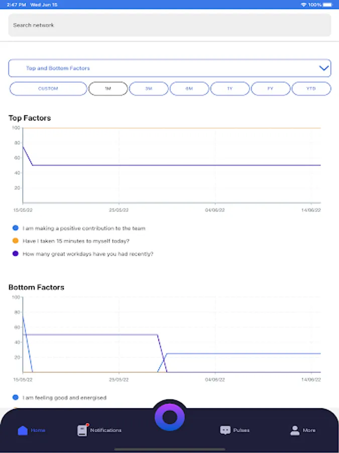 Easily measure everything that matters to you and your team from engagement, culture, leadership, wellbeing and more. Get real time insights on your team’s performance, ditch the annual performance review and gain continual feedback to prompt conversations that matter.