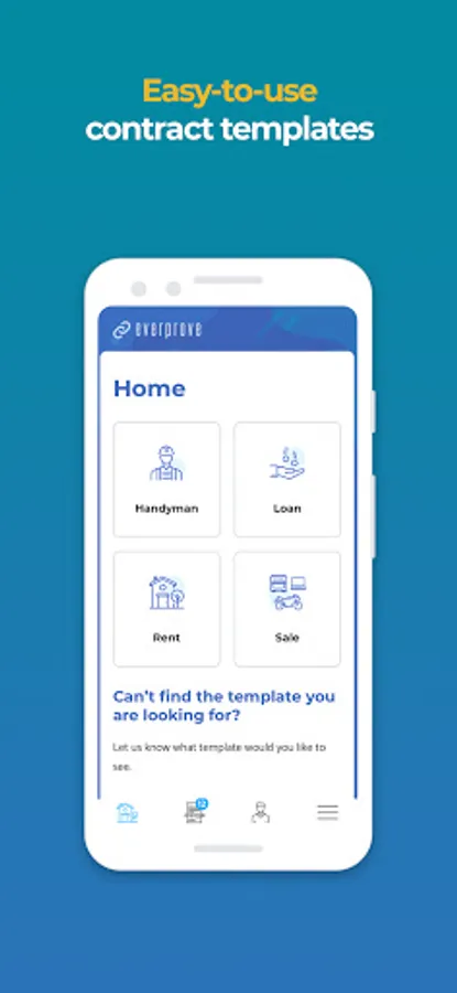 Everprove allows you to conclude and secure your deals easily from your smartphone. Using our contract templates, your deals will be properly documented and our application secures them with cutting-edge technology.