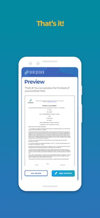 • Everprove allows you to conclude your everyday legal dealings from the comfort of your smartphone.