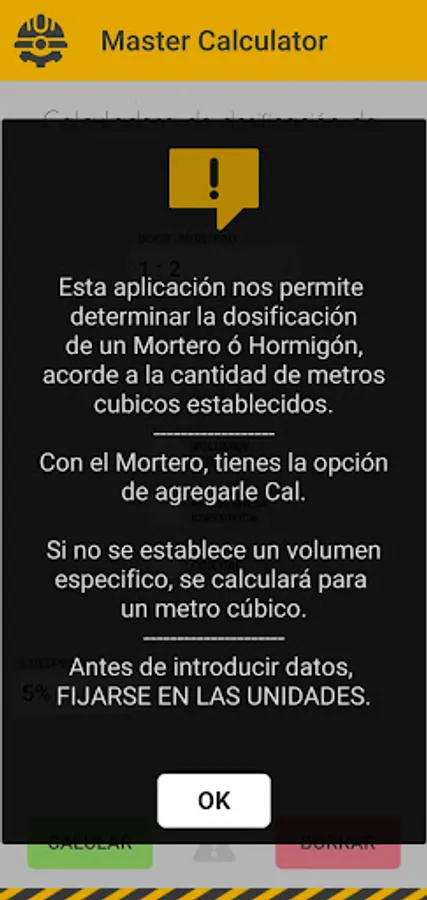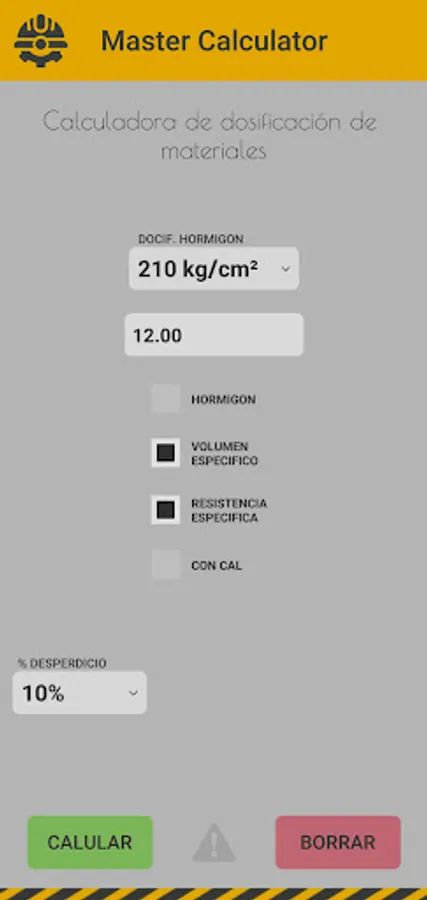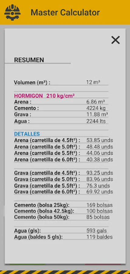This tool allows us to calculate the amount of materials needed for a specific volume of mortar or concrete, without the need to resort to dosing tables.