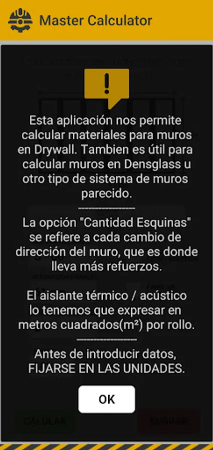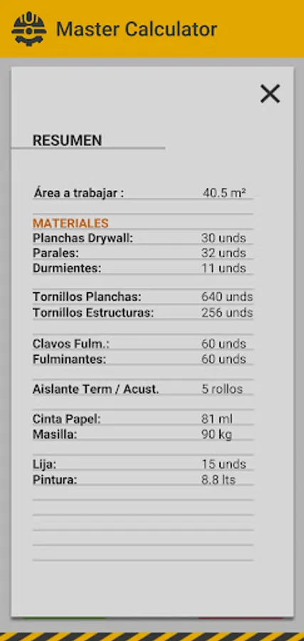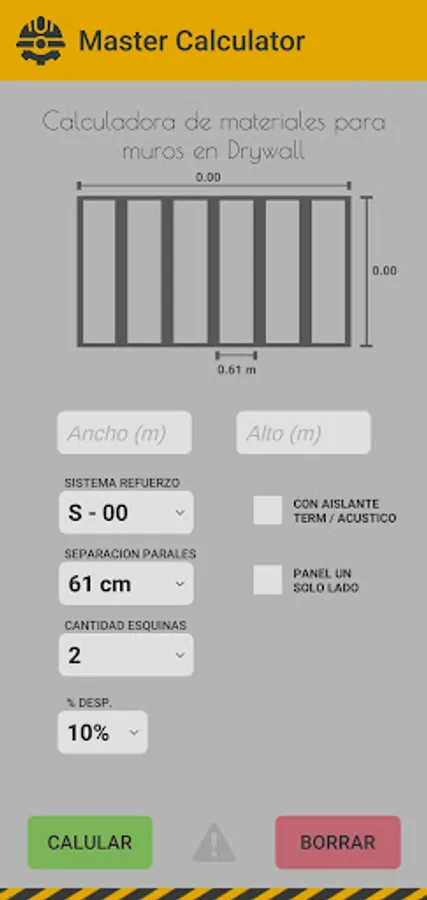 Aplicación que nos permite calcular la cantidad de materiales para sistemas de muros en Drywall.