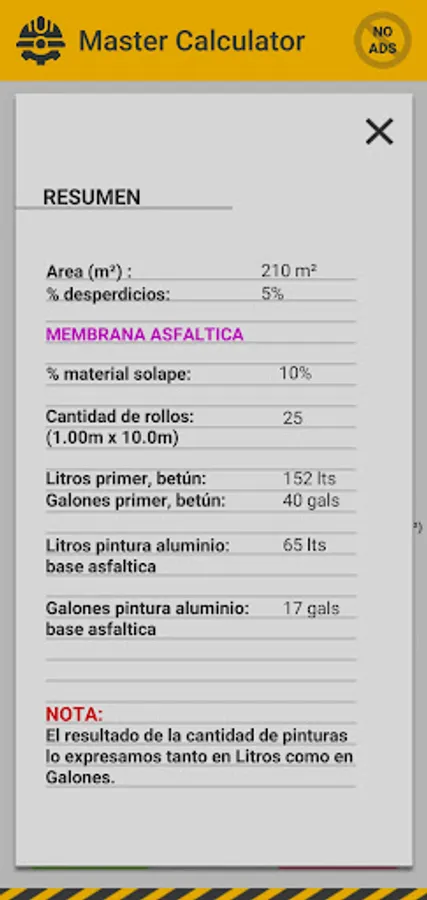 Calculator that allows us to determine the amount of materials for waterproofing with Asphalt Membrane or Elastomeric Sealant.