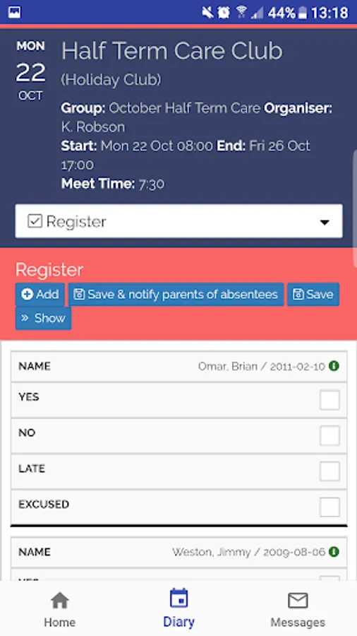 STAFF have access to attendance registers and instant access to safeguarding information that clubs collect during registration. Emergency contacts, doctors, allergies, medical conditions and more all accessible via your Android device.