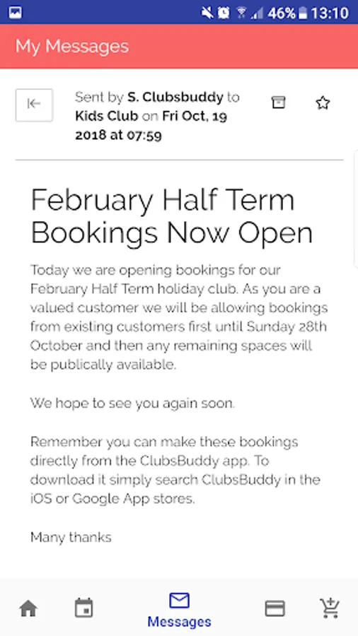 MEMBERS and PARENTS can see a diary of their booked events, register, book and pay for other activities right from the handset. The members or parents can also receive communication via push notification and email.