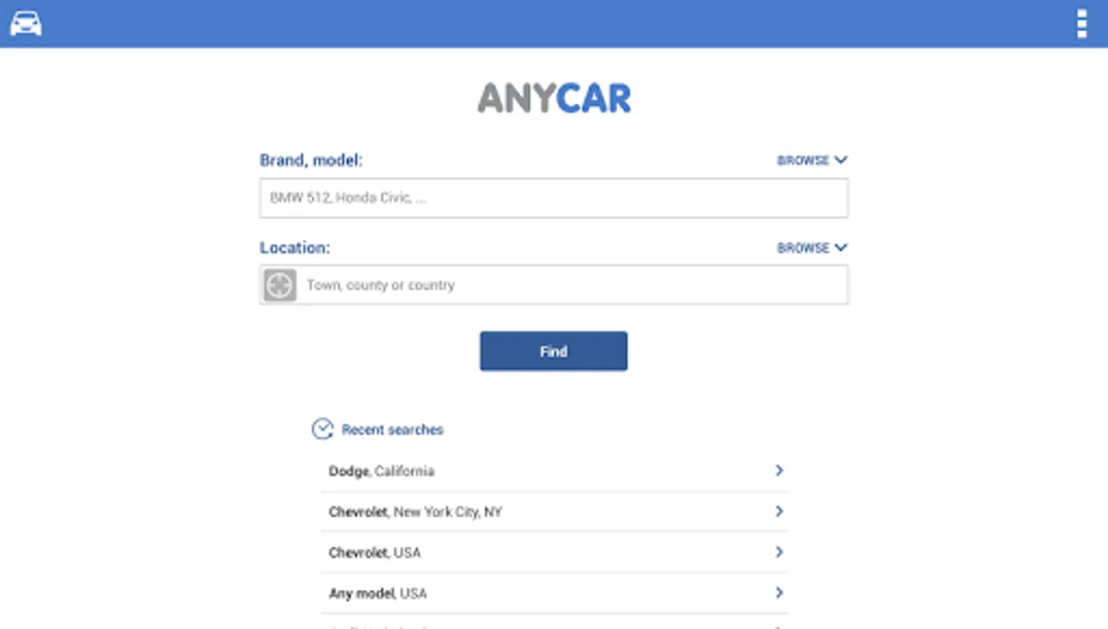 Anycar is the largest auto and car marketplace in the world, compiling all available online ads into one app.