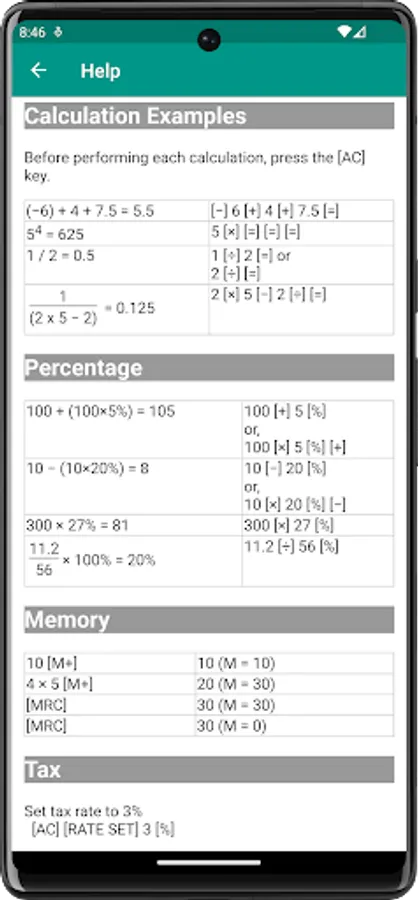 This free to download calculator app is reliable and easy-to-use. See the help screen for instructions on how to use the function keys.