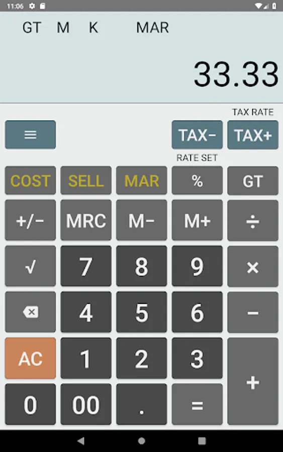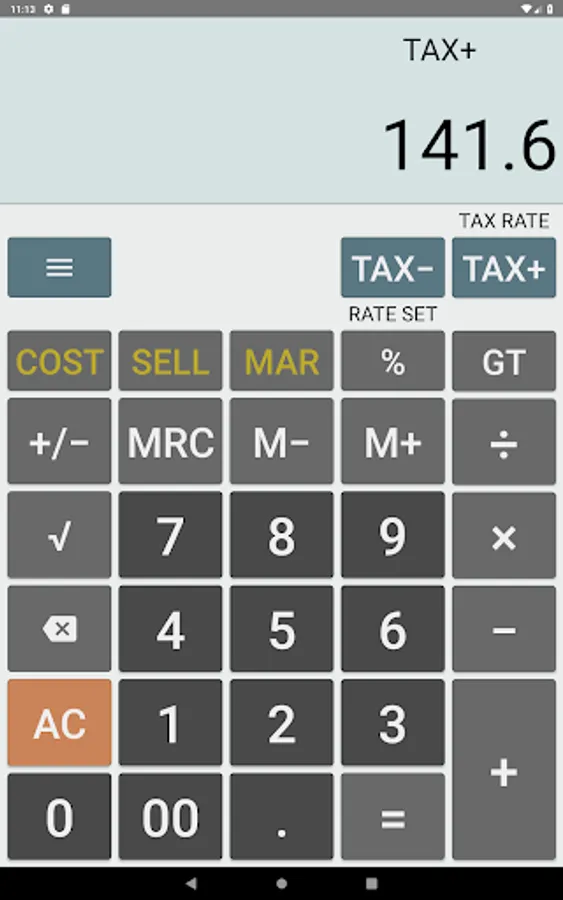 • TAX+, TAX- keys for calculating VAT/ GST and sales tax