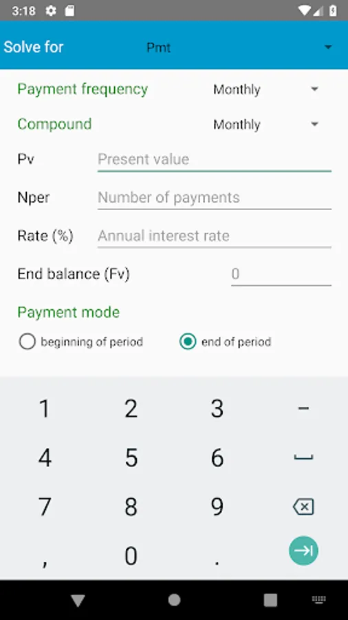 Time value of money is a powerful concept. Almost any kind of financial calculations can be accomplished with the calculators provide with the app. You can solve for any of the variables viz., present value (PV), future value (FV), number of payments (NPER), interest rate (RATE) and periodic payment amount (PMT). The app covers most of the financial functions available in popular spreadsheet programs like MS-Excel and Google Sheet and in physical calculator models like HP 12C and TI BA II plus.