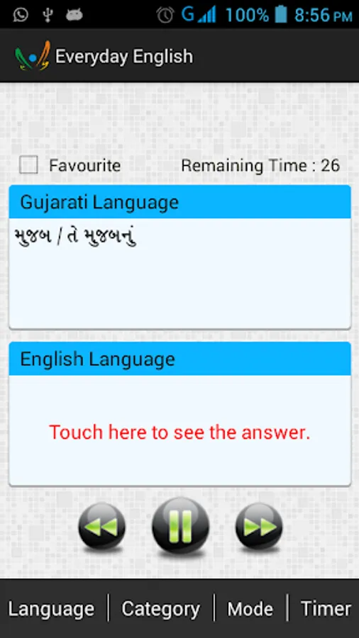 There is no additional effort required to learn English through Gujarati and Hindi now. You just see the words/sentences on the screen and try to use them. It’s very simple. The words/sentences will appear randomly on the screen.