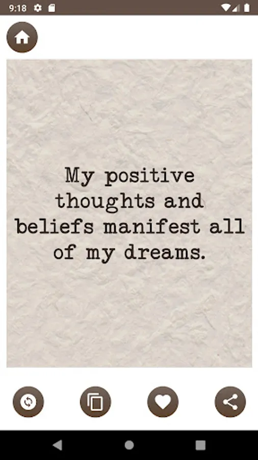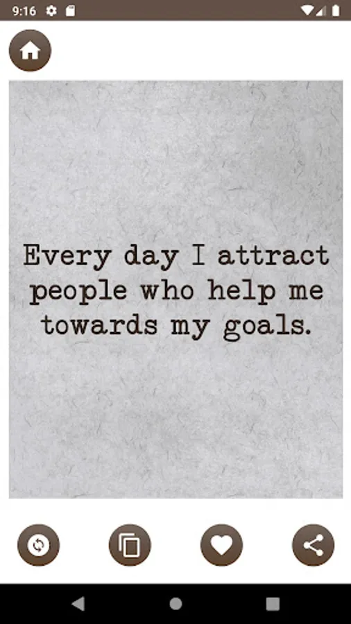 In this app you can change the backgrounds to create different affirmation cards, save your favorite affirmations, set reminders to get daily affirmation notification.