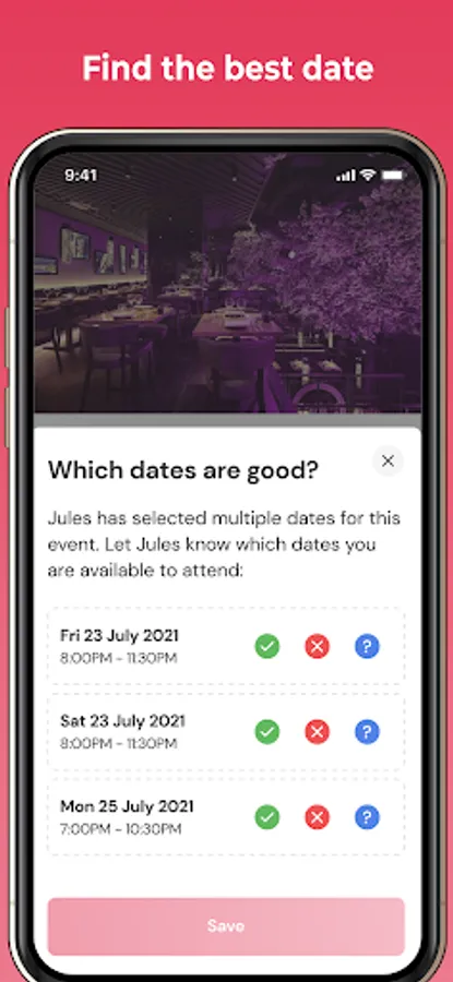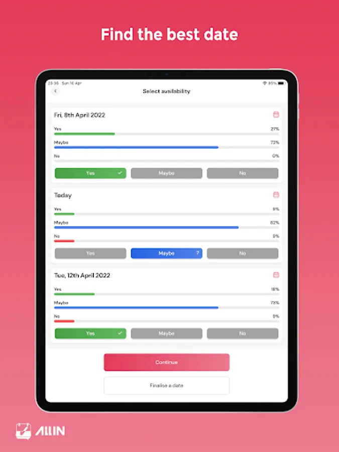 2. Share your idea and multiple calendar dates in an ALL IN poll for your mates to vote on.
