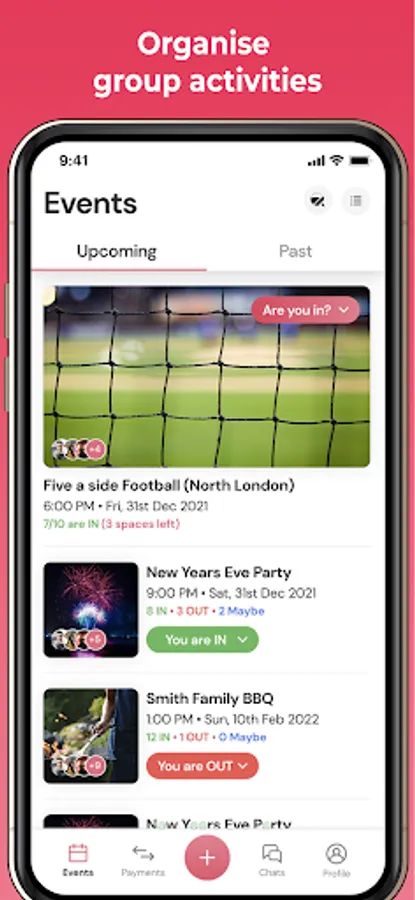 ALL IN makes planning easy for your sports team or club. Get a date for a game, share with your friends and let everyone vote. You can easily plan once you know you have enough numbers whether it be for one match, a weekend away for your club as a match organiser with other teams or just planning a social. All costs can be captured, split and settled through the app, whether match fees, drinks expenses or kit costs. You can see who has paid, who still owes and get them to settle up directly through the app.