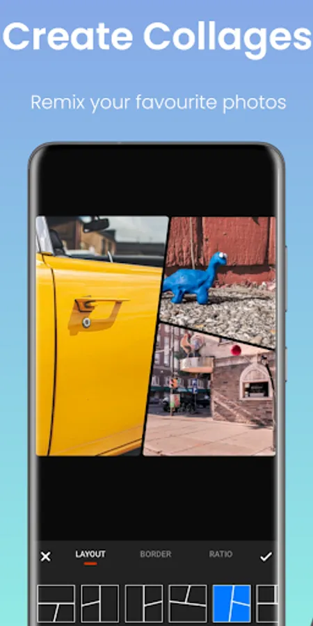 ✅ Create photo collages easily with a variety of preset collages, grid style, customized ratio, and background.