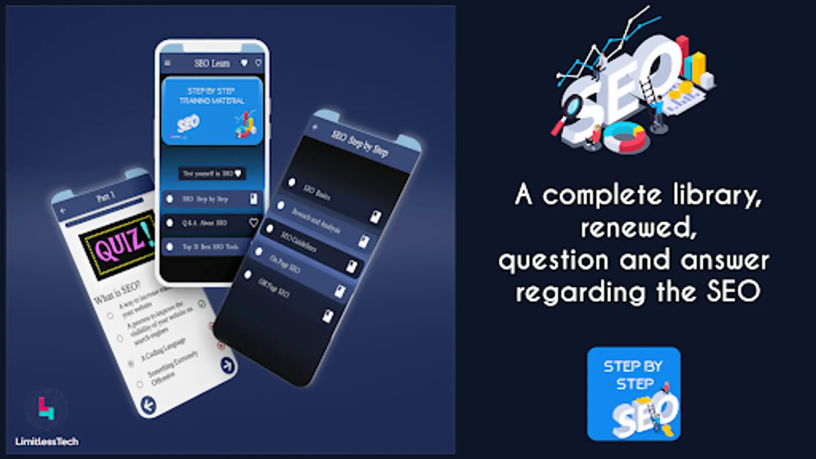 SEO Quiz : a large and renewed number of common questions and answers to test yourself in SEO with the result displayed at the end of the test to evaluate yourself and see how much you have benefited from the lessons within the application