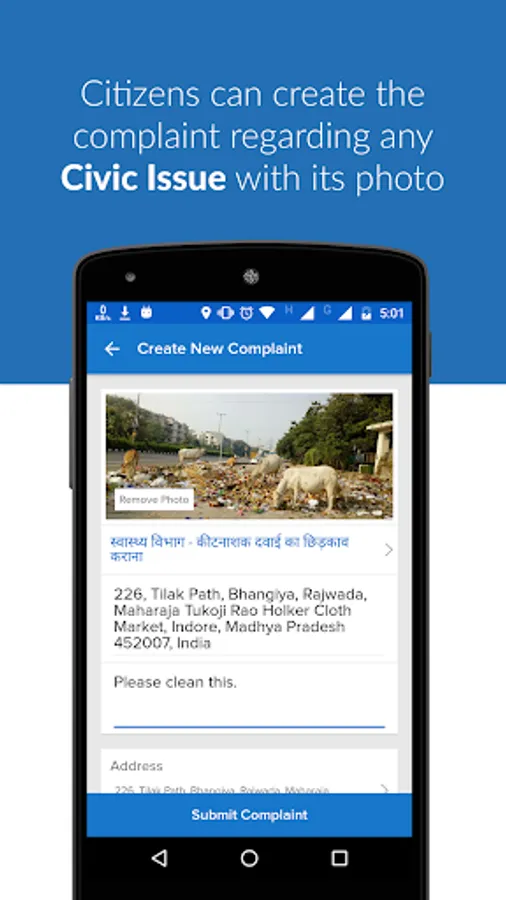 Indore 311 app encourages citizens of Indore, to Communicate directly with there community leaders in government to resolve issues in there neighborhood.