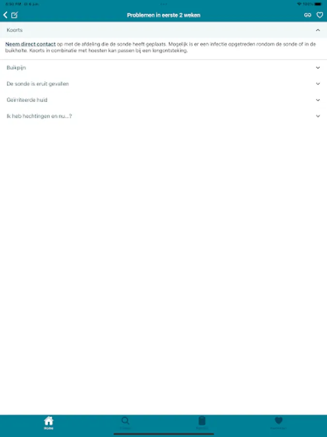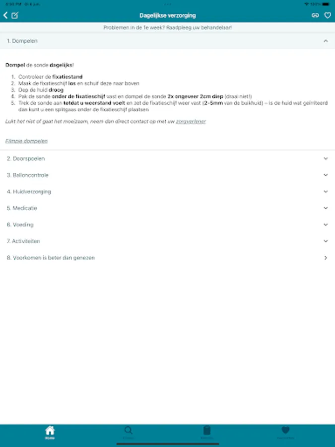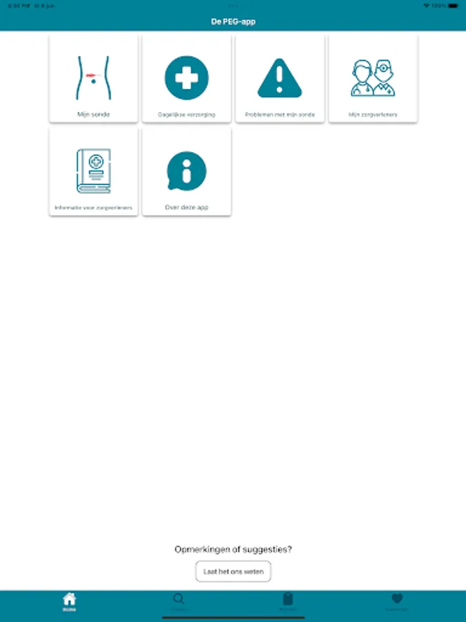 With this application, users have a manual overview of their probe, daily care is discussed, common questions are answered and tips are given to recognize and prevent problems. The aim of this is to make people who have a PEG probe or derivative more self-reliant and to prevent unnecessary hospital contacts.