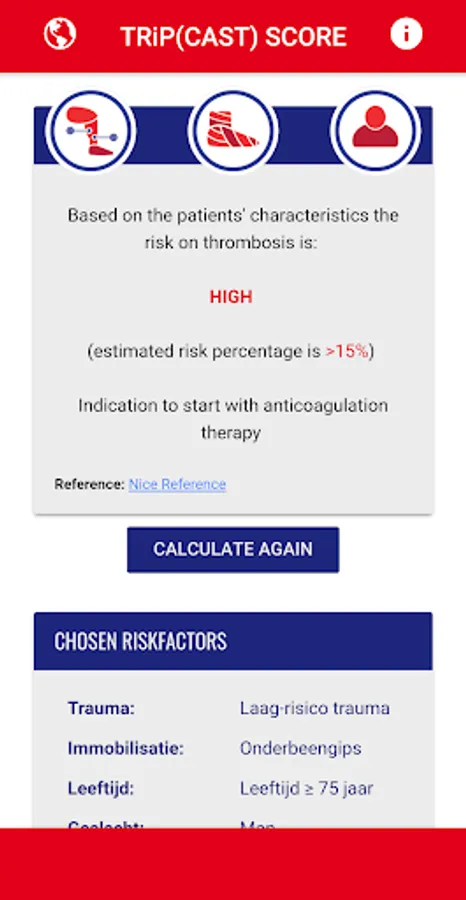 Tripcast is bied een situatiebevraging zodat tijdens de operatie de kans op trombose berekend wordt.