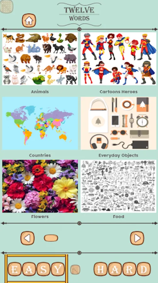 Find words well hidden. You can choose many categories and also the difficulty (easy/hard).