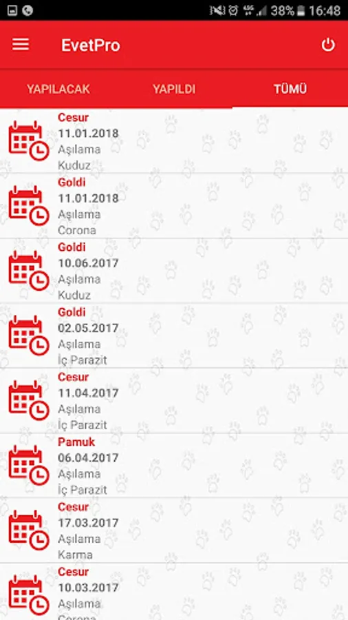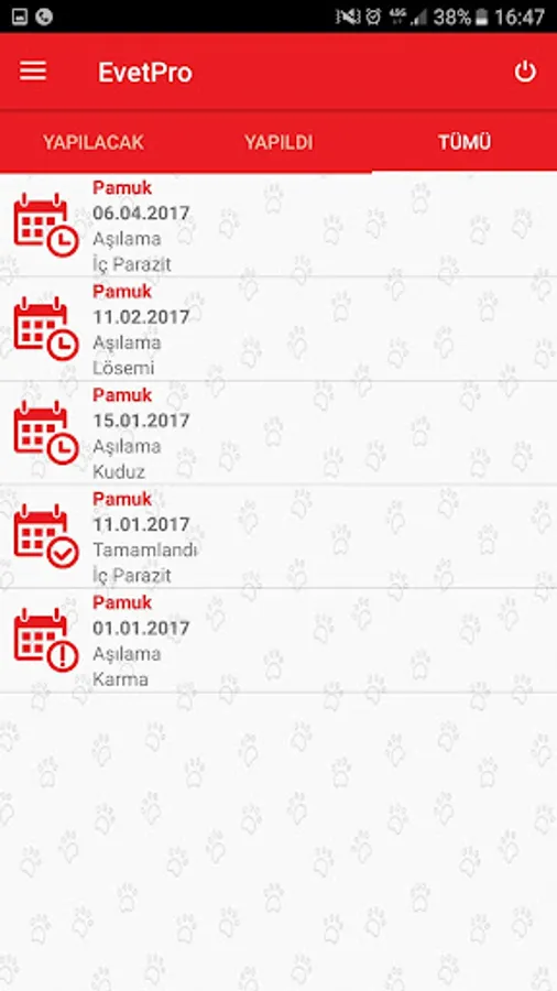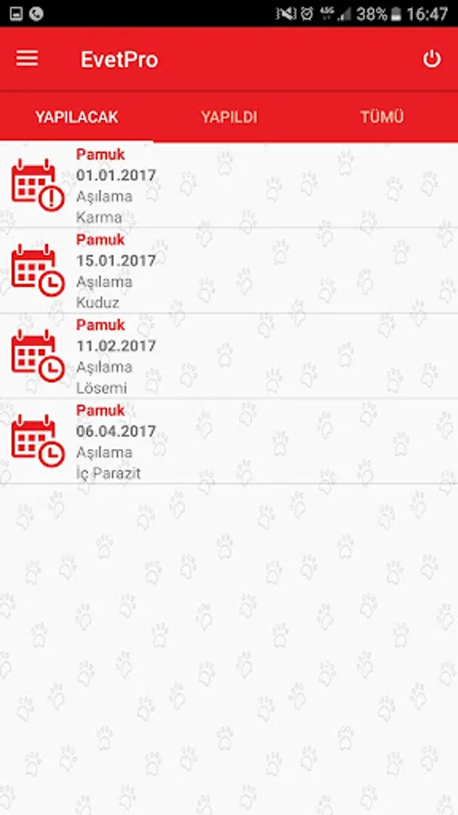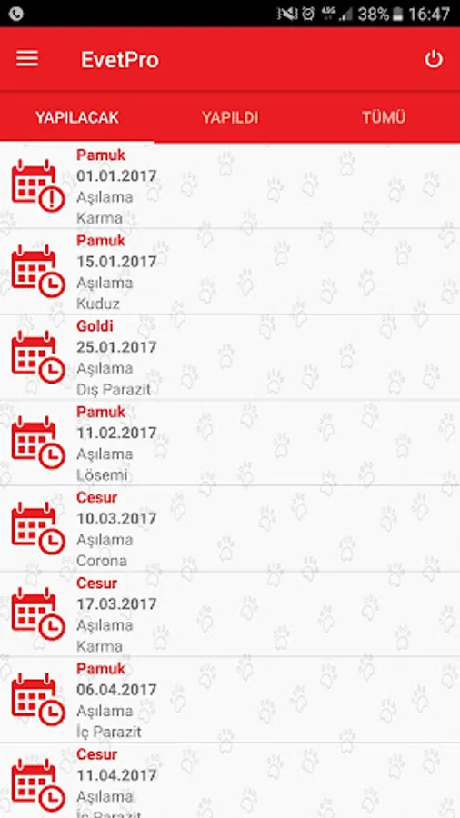 The vaccine, operations and all other e-vet appointments Pro can track via the mobile application.