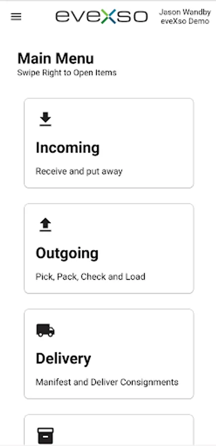 eveXso is a full featured Warehouse Management solution allowing you to receive, put away, pick, pack and despatch orders. It also includes a comprehensive transport management system including fleet management, route planning, sequenced loading and proof of delivery.