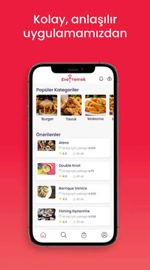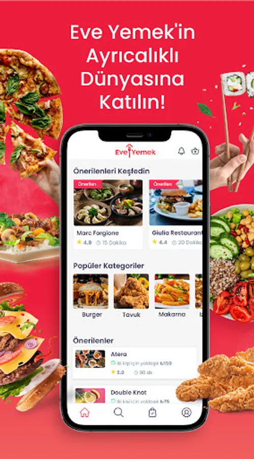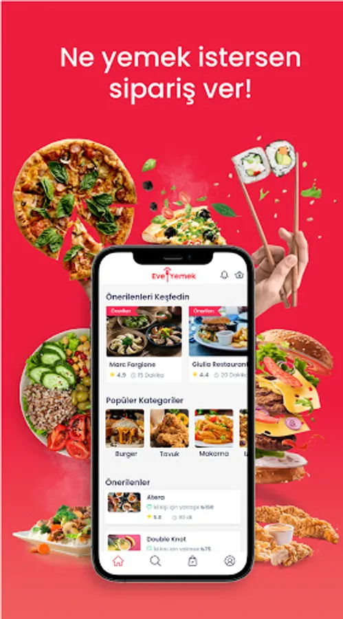 Ordering food has never been easy with the one tap away Eve Yemek app. Can find your local food in a few seconds. Tap away and your food gets delivered by the Eve Yemek delivery team.