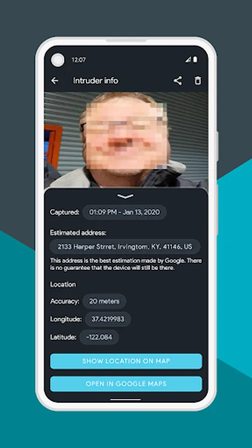 Step 2. In the meantime, Intruder Detector finds your device location and address without them knowing.