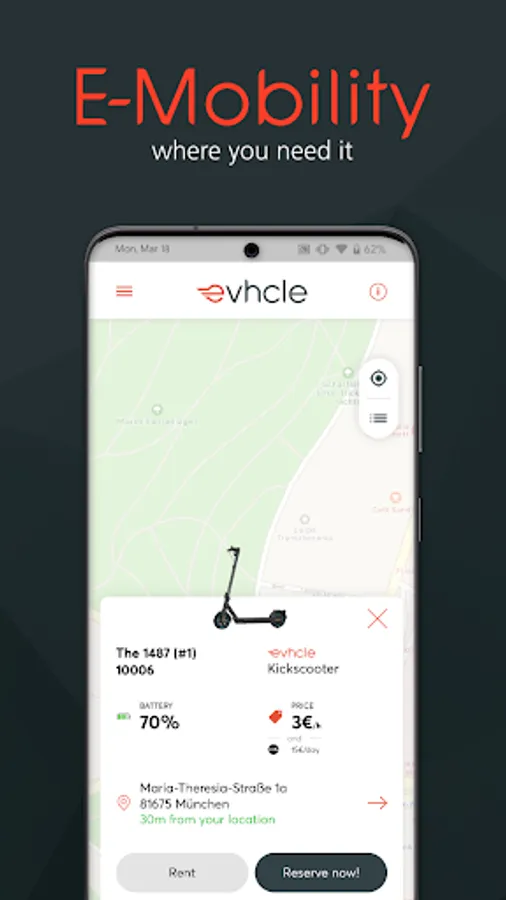 With evhcle you use a multimodal sharing model that adapts to your individual needs. Whether you want to cycle to work, explore the most beautiful spots in the city with a kickscooter, or do your next big shopping trip by car.