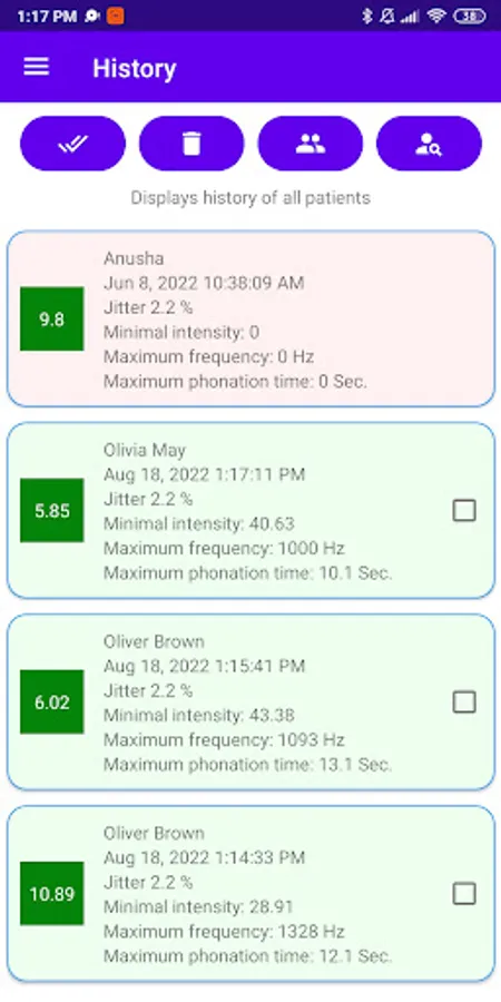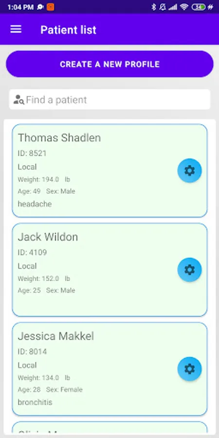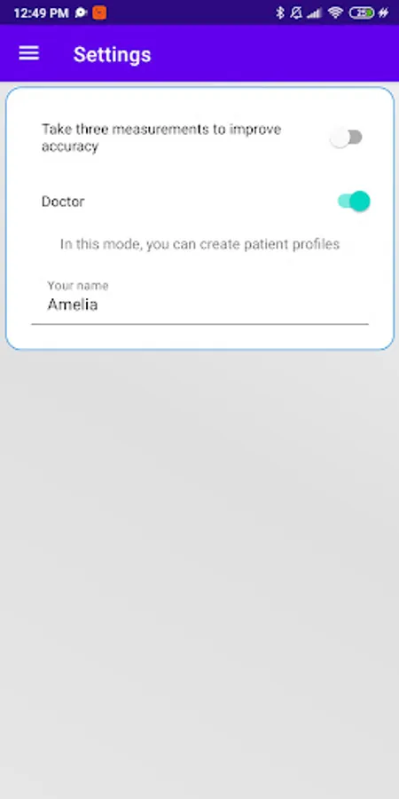 In doctor mode, it is possible to create patient profiles and keep track of measurements and view history for each individual.
