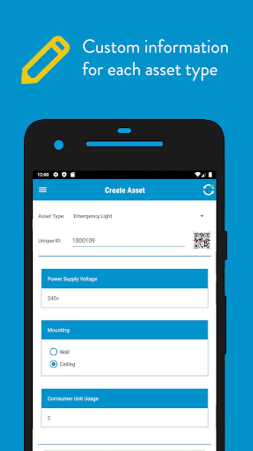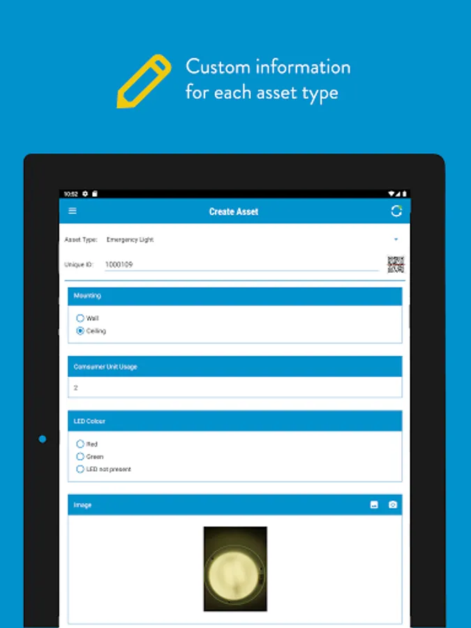 Custom attributes allow you to specify the precise information you want to record against each asset. These are set-up against each asset type to offer maximum flexibility. When tagging, using asset types means you only see the attributes you need to fill in for that asset making it quick and simple to build your asset registry.