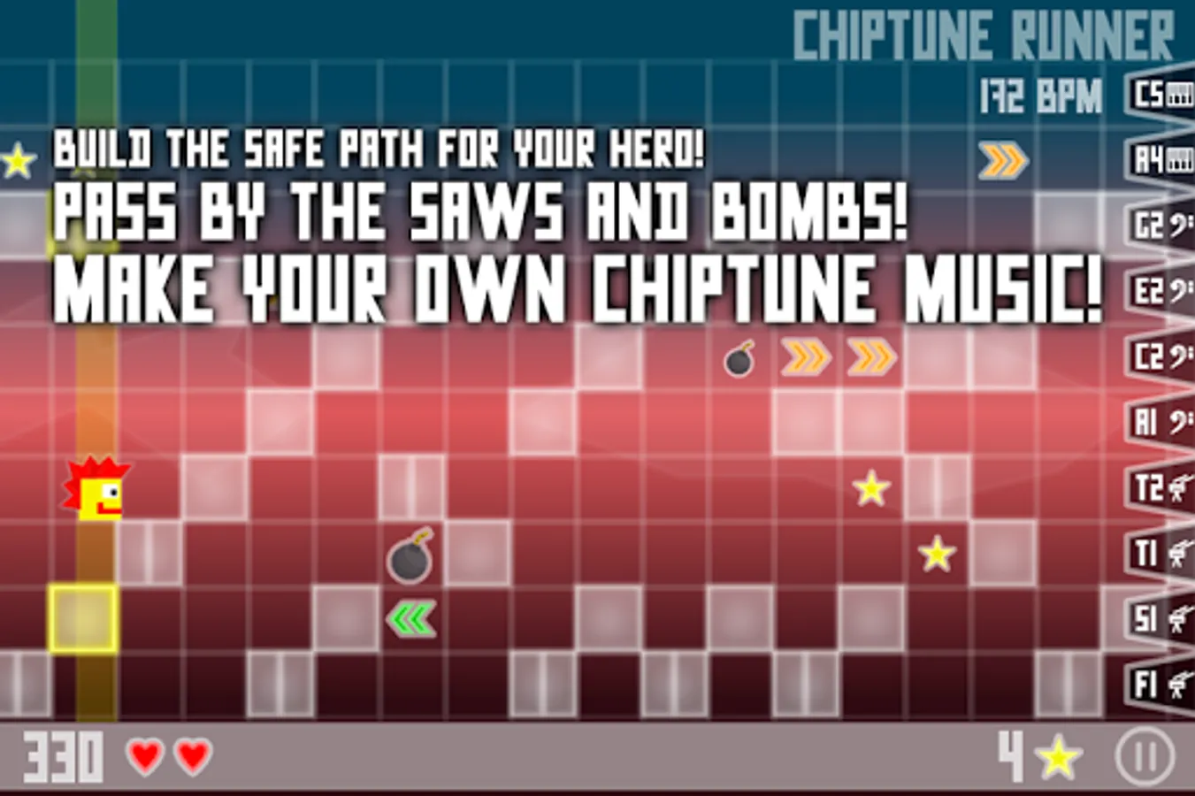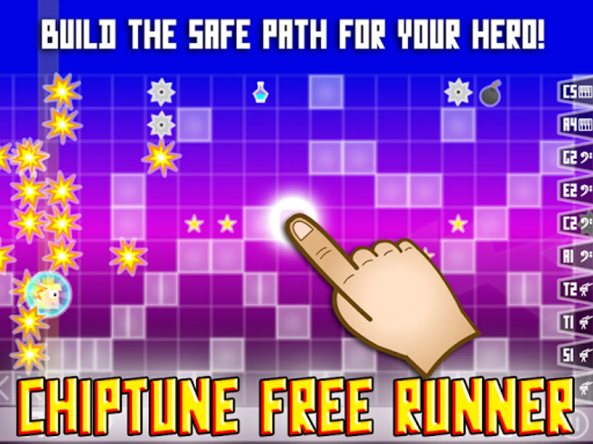Chiptune Runner is fast and addictive runner game with unique gameplay. Just light up the cells and let him jump.