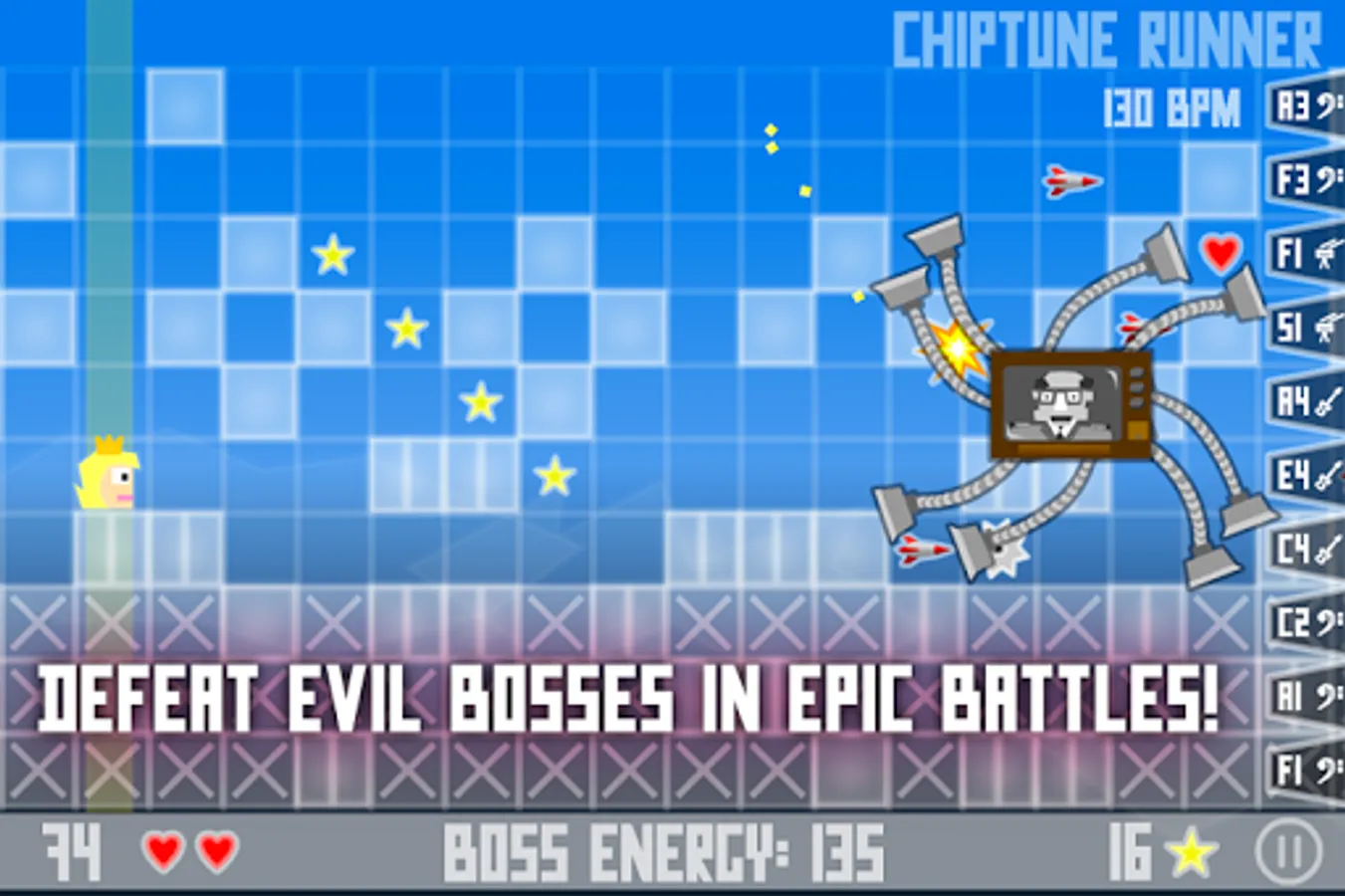 Remember - each cell is a sound, avoid saws, bombs and defeat ugly bosses. Be fast and smart!