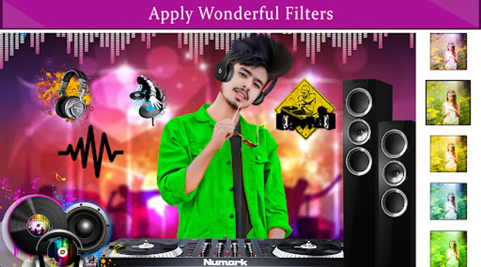 DJ Photo Editor application Change your photos totally by applying these DJ effects. DJ Photo Editor is the best effect photo editor tool. Use this app and enter in the biggest animation and DJ world.