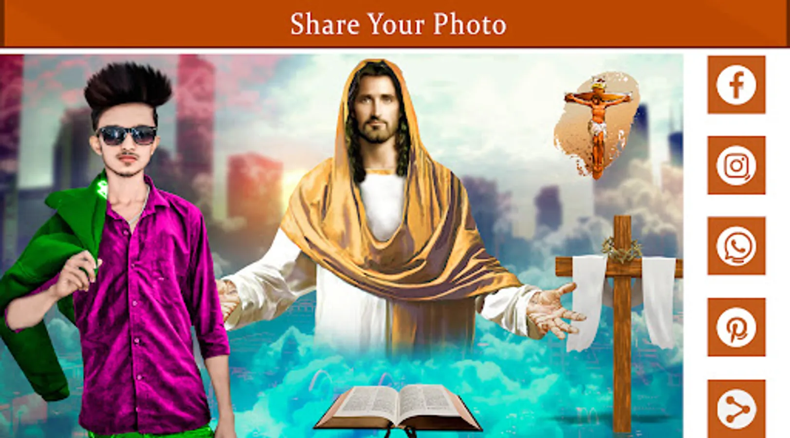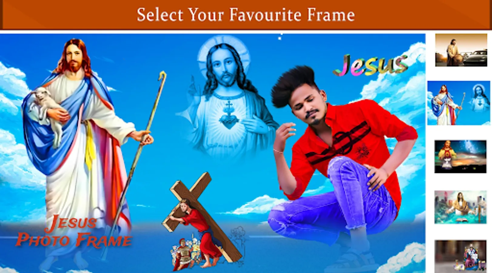 Jesus Christ Photo Frame lets you put your photo along with Lord Jesus.