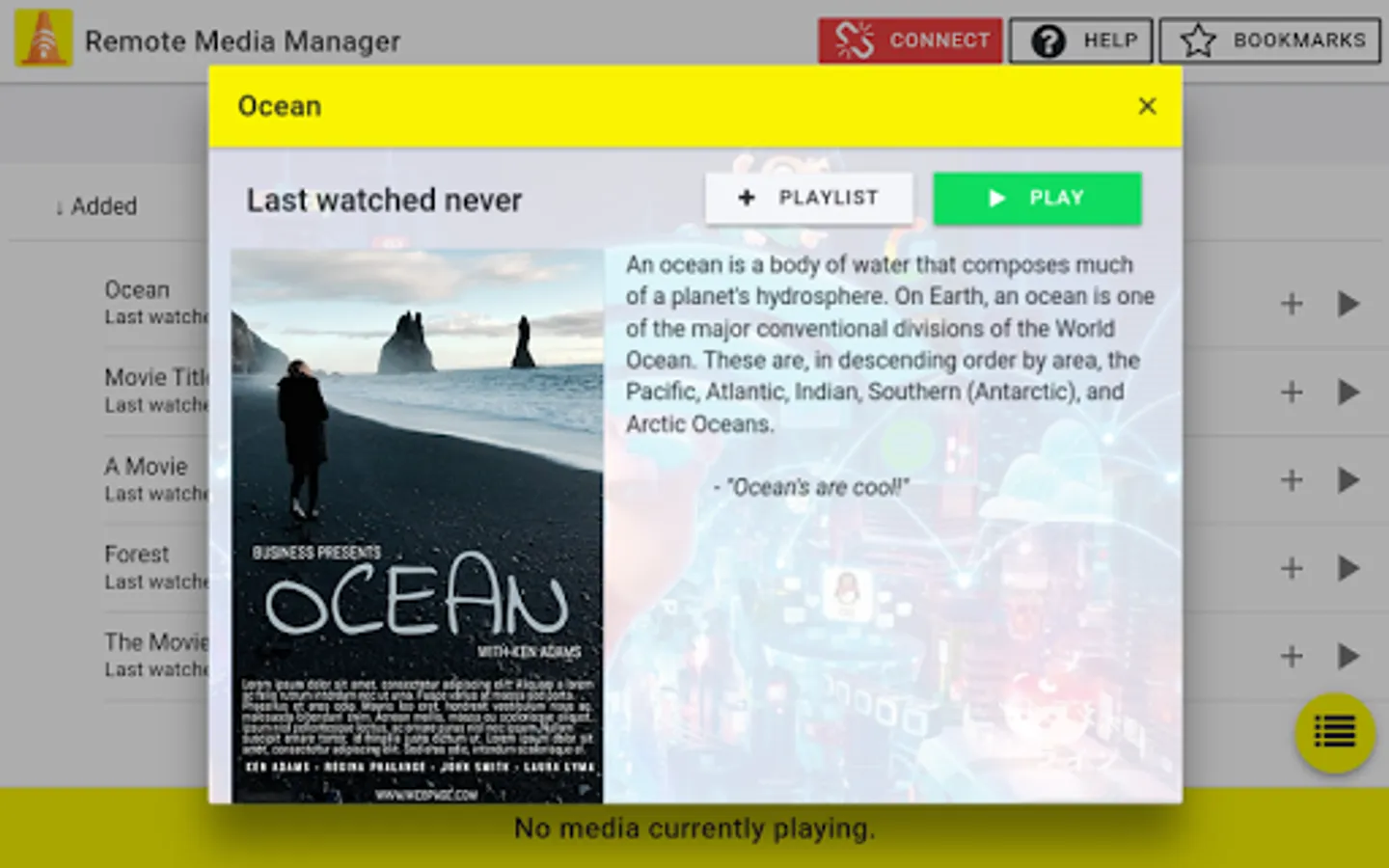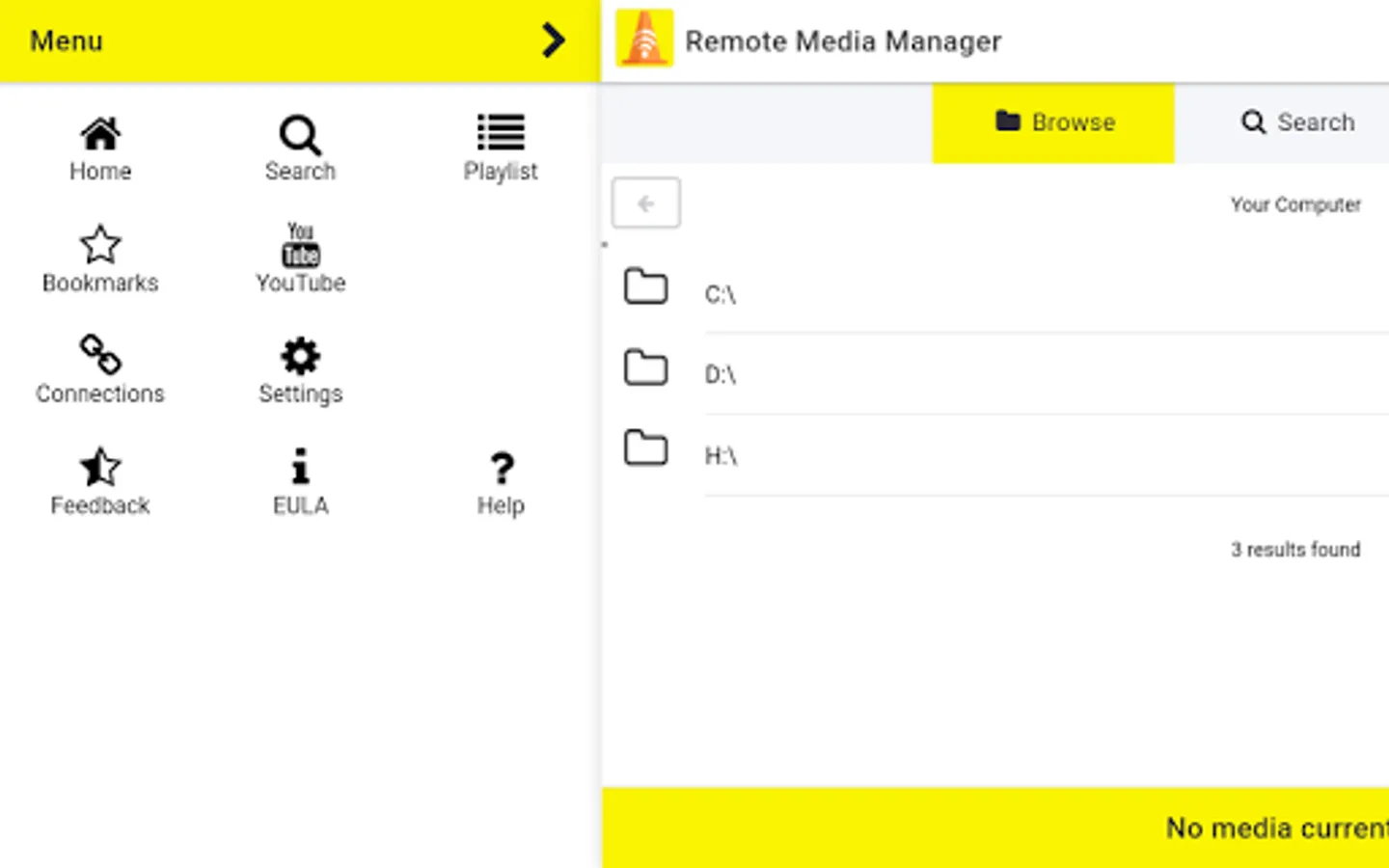 Remotely control VLC Media Player. Browse your local media quickly and easily. Automatically gather media metadata based on file names. Search through your media and bookmark results or playlists. Browse YouTube and stream videos to VLC Media Player. Easily and automatically connect to VLC Media Player running on another device. This VLC remote also works with systems running Linux distributions.
