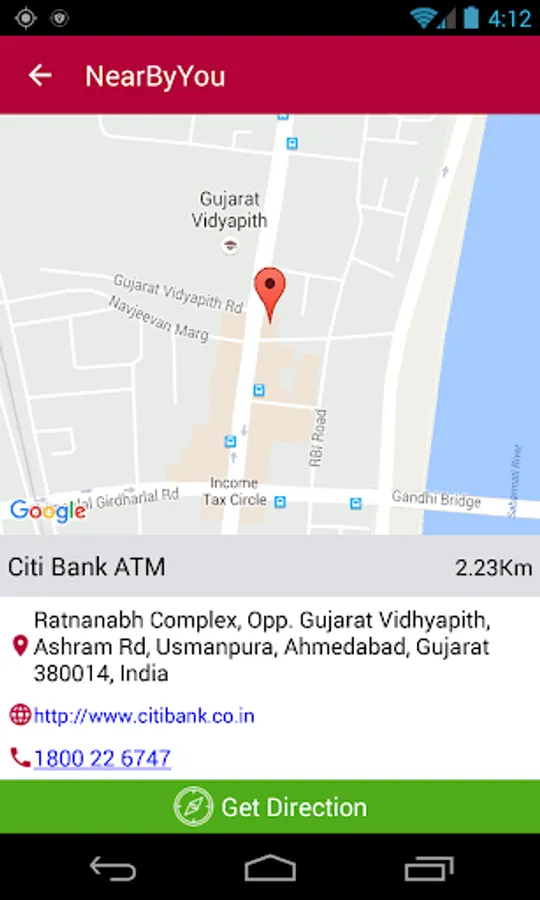 NearByYou also shows the detail about the places which you have searched with their website link, address, distance from your current location, phone number etc.