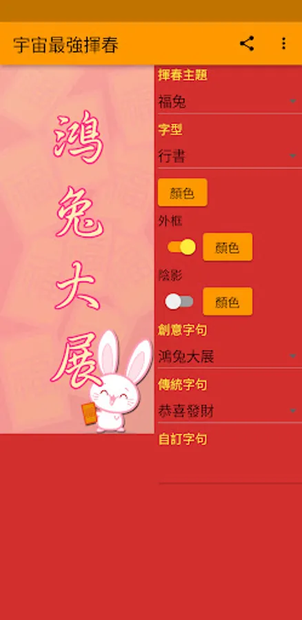 2023 is coming, the Year of the Rabbit is coming, come and send New Year blessings to your relatives and friends. There are different Huichun in the app, and you can also create your own. Huichun can be saved, and can also be sent to relatives and friends through Whatsapp, Facebook, email, etc.