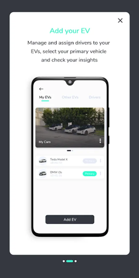Add multiple vehicles (eg personal, company) and charging cards (eg personal, corporate) in the same app account