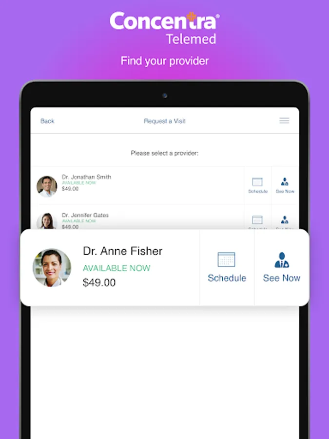 Use Concentra Telemed™ to get medical care and physical therapy right where you are, right when you need it. Talk to an expert work health clinician or physical therapist using your smartphone or tablet for a video visit.