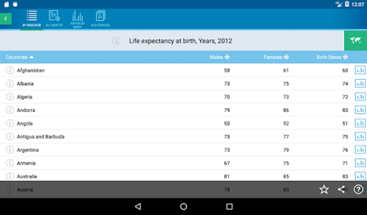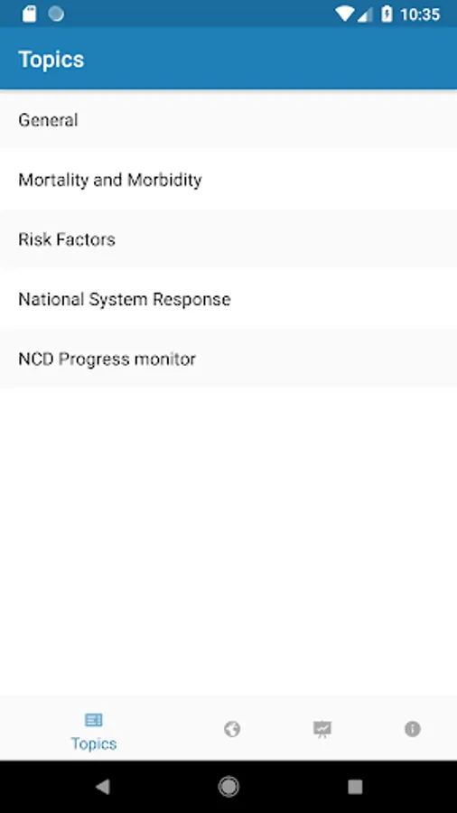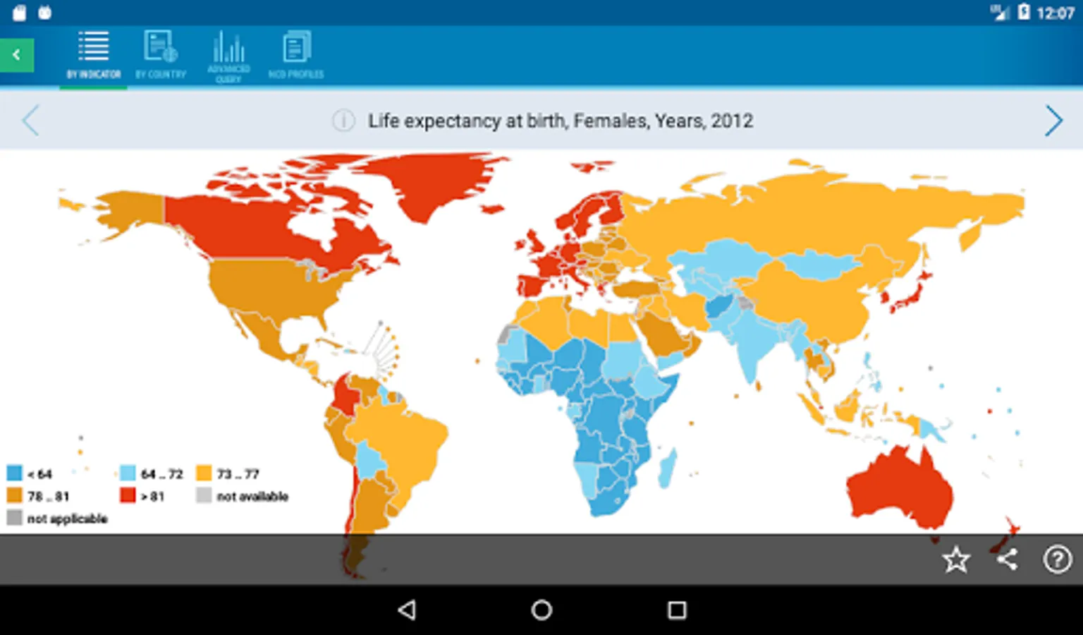 NCD Data Finder presents information for each country related to their NCD mortality, prevalence, risk factors and national systems capacity to prevent and control NCDs. The data include the number, rates and causes of deaths from NCDs and trends in NCD mortality; the prevalence of selected risk factors; and information describing current national responses to prevention and control of non-communicable diseases.