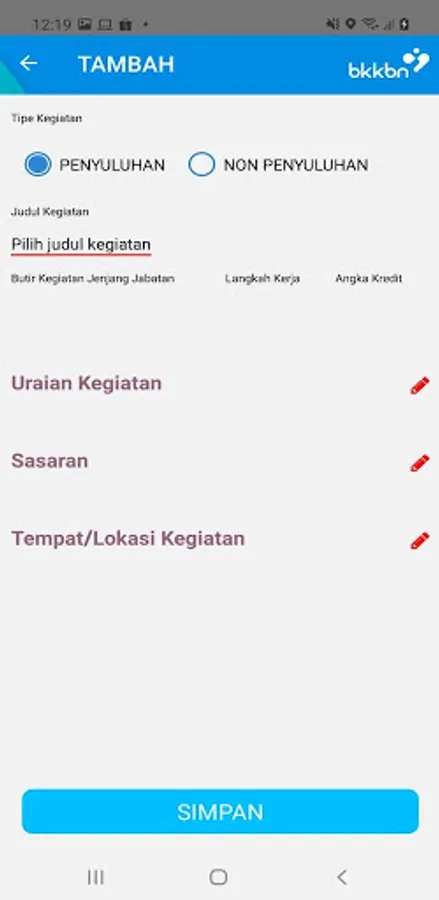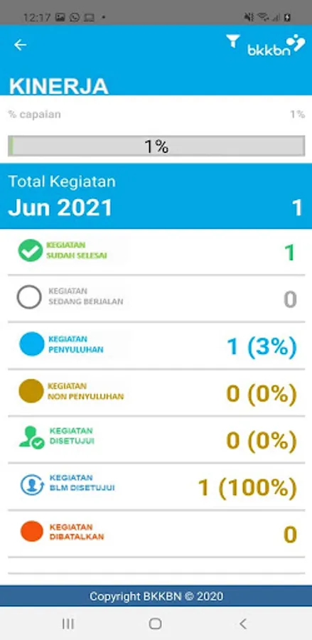 Application for recording and reporting daily performance of the KB/PLKB Instructor in supporting the performance of the KB/PLKB Instructor in the field and information on the achievements of the Family Development and Family Planning Program in the KB/PLKB Instructor's target area.