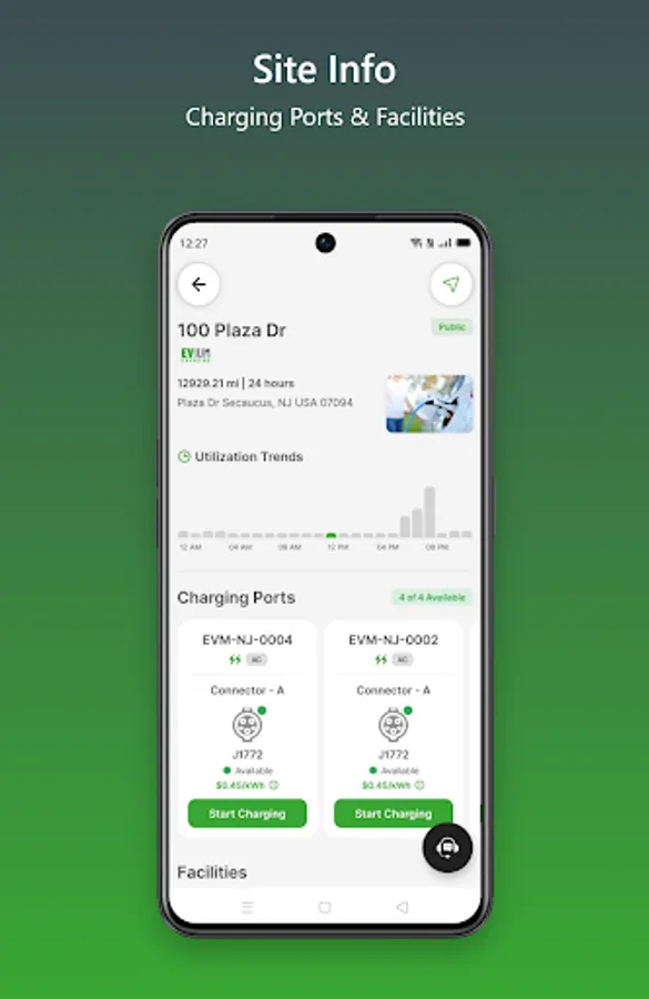 - Details Site Info Screen: You can now view detailed information about charging stations, including location, Availability, Amenities, Pricing, Opening times and more.