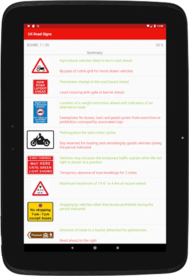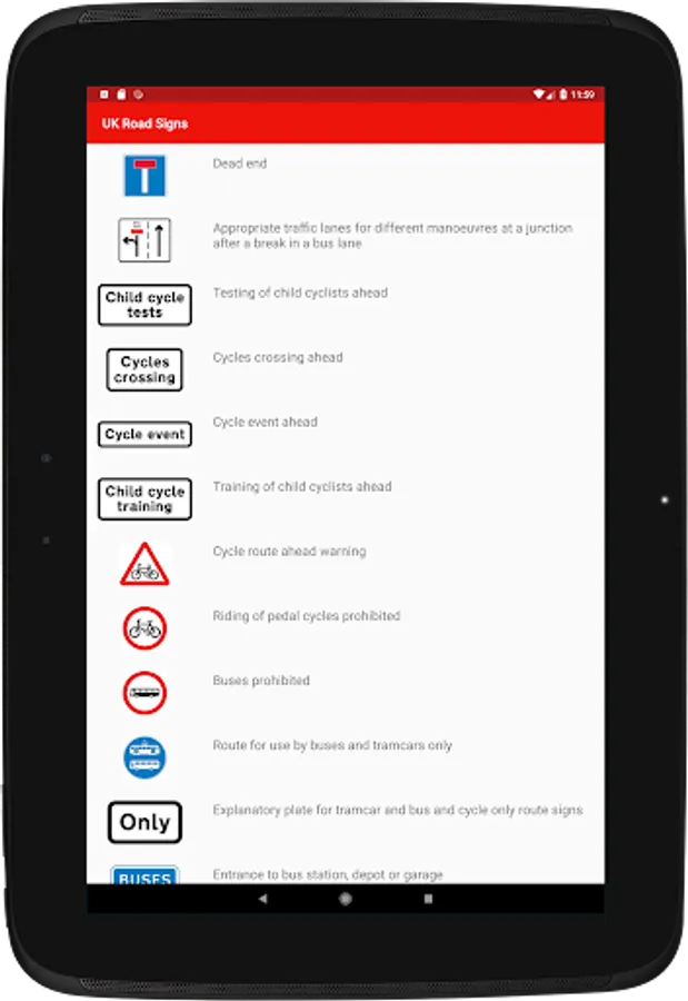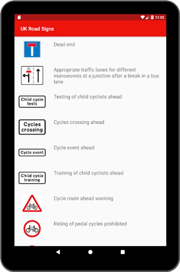Learn all about the road signs used in the United Kingdom. Drivers should be aware of the traffic signs around them, and this app is an easy way to learn the meanings of different signs and take a quiz to confirm your knowledge.