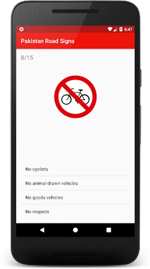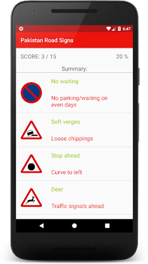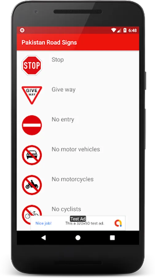 This app contains both a quiz where you can test your knowledge, as well as a list of all the different traffics signs with image and explanation. Perfect to use if your studying for a test, or just want to learn the different road signs.