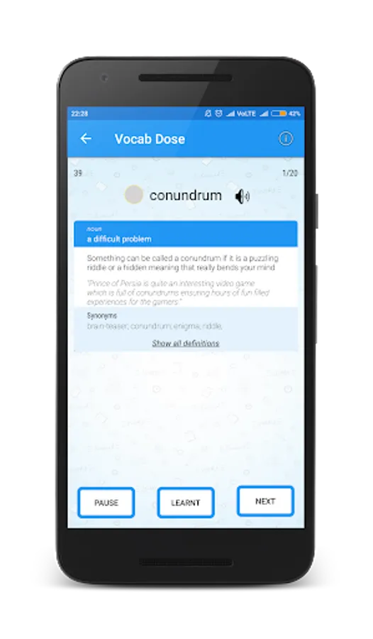 This simple yet powerful technique is what Vocab Dose uses to help you build a strong and rich English vocabulary really fast. It comes with customized tests, revision flashcards, fun crosswords and much more.