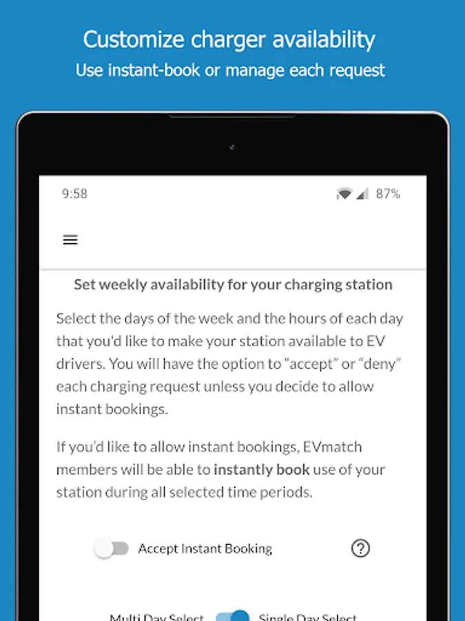 -Manage bookings and get paid for hosting your electric vehicle charging station.