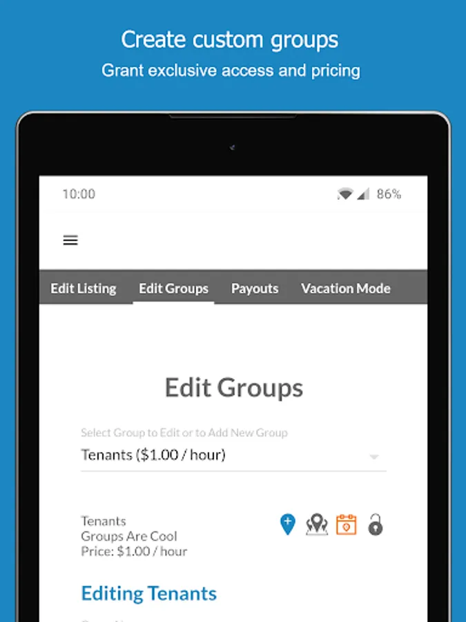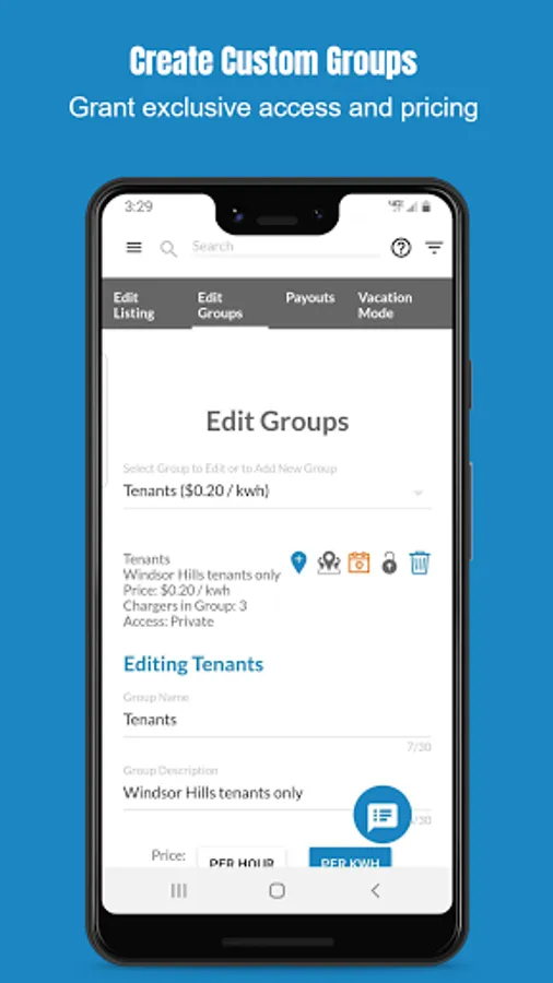 -Update your electric car charging station listing, availability, and per kWh or hourly access fee.