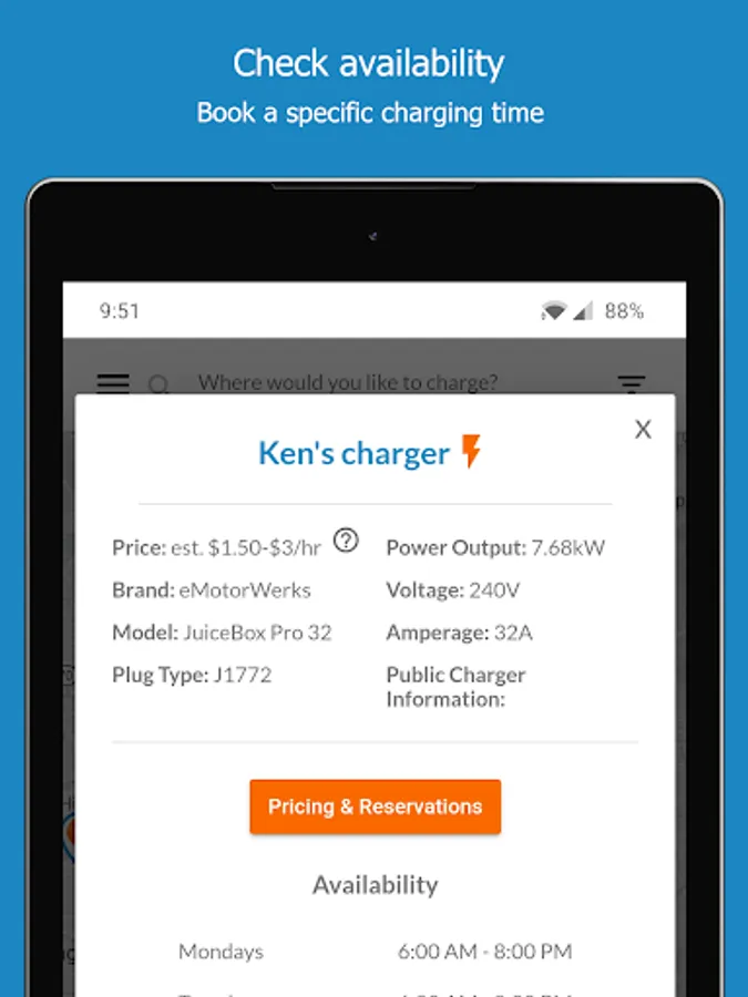 -Get access to more electric car charging stations (Level 1 and 2) by booking the use of private home and business chargers in advance.