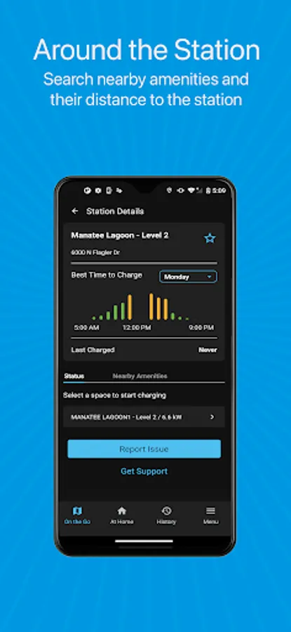 Charging Station Details: Port availability, energy cost, outages and nearby amenities.
