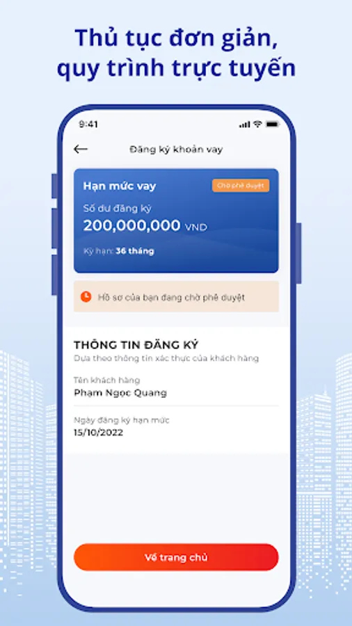 - Step 3: We will contact, advise and guide customers to provide documents. The process of verifying and checking information will take up to 8 working hours. After that, you can actively use the loan limit quickly and safely.